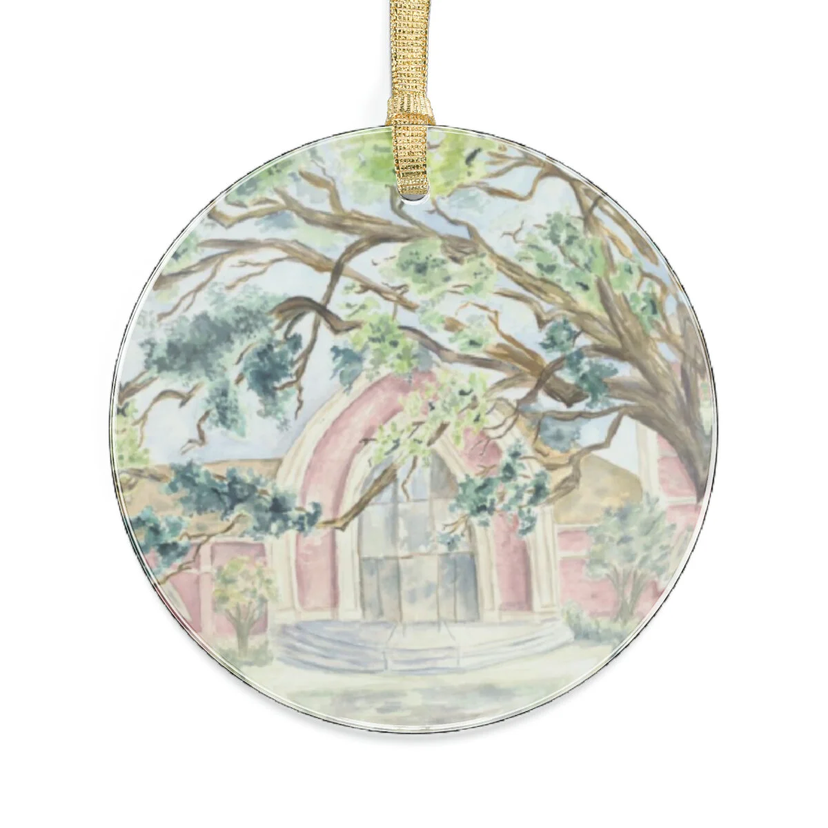 Gold ribbion included for hanging. Material: 100% clear acrylic. Glossy finish with one-sided print .